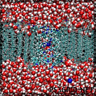 Nous distribuons des unités de travail comportant des simulations sur les atomes de la protéine "Gramicidine A" pour transporter des ions, soit une simulation sur un total de 30 000 atomes. Chaque unité dure moins d'un jour et vous devez la terminer dans un délais d'une semaine passé ce délais, l'unité est de nouveau distribuée. Vidéo