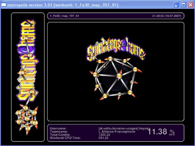 Les unités Spinhenge@home ont une durée de calcul, une utilisation de la mémoire Ram et du disque dur qui dépendent de la taille de la molécule calculée. Les unités les plus exigeantes rapportent plus de points.